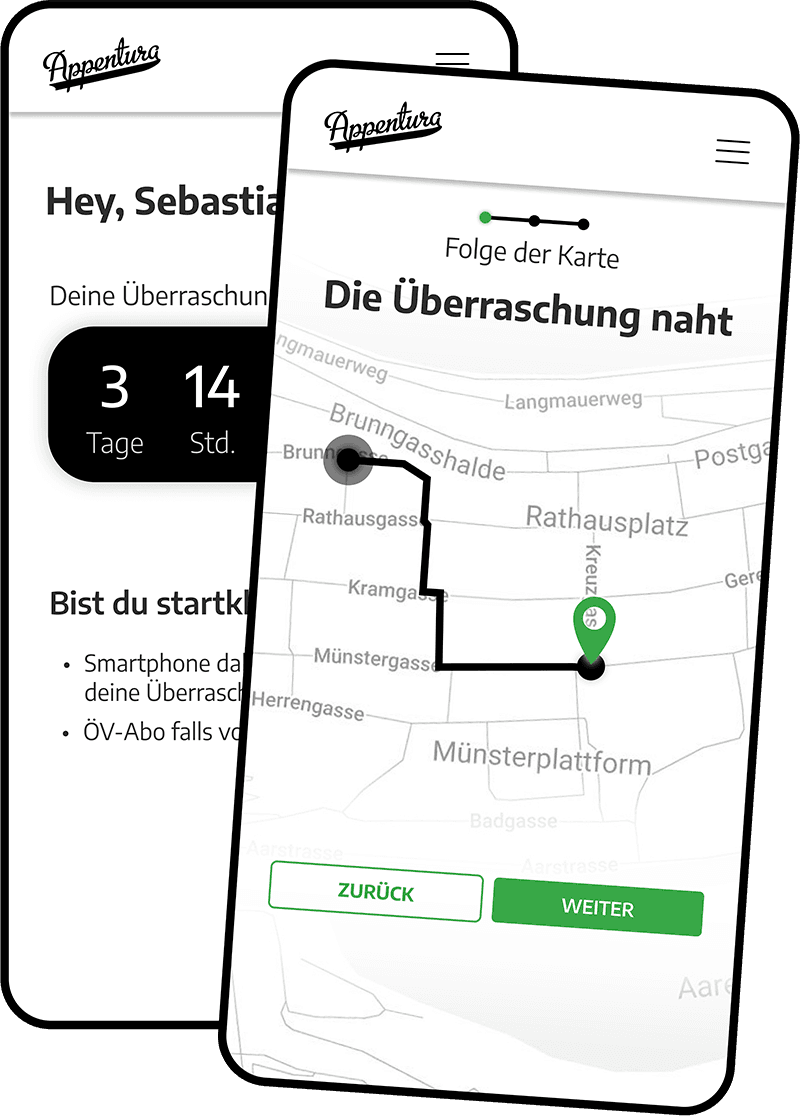 Appentura inszeniert mit Smartphone Anweisungen Aktivitäten zu einzigartigen Überraschungen. Inklusive kompletter Planung, Organisation und 24/7 Hotline.